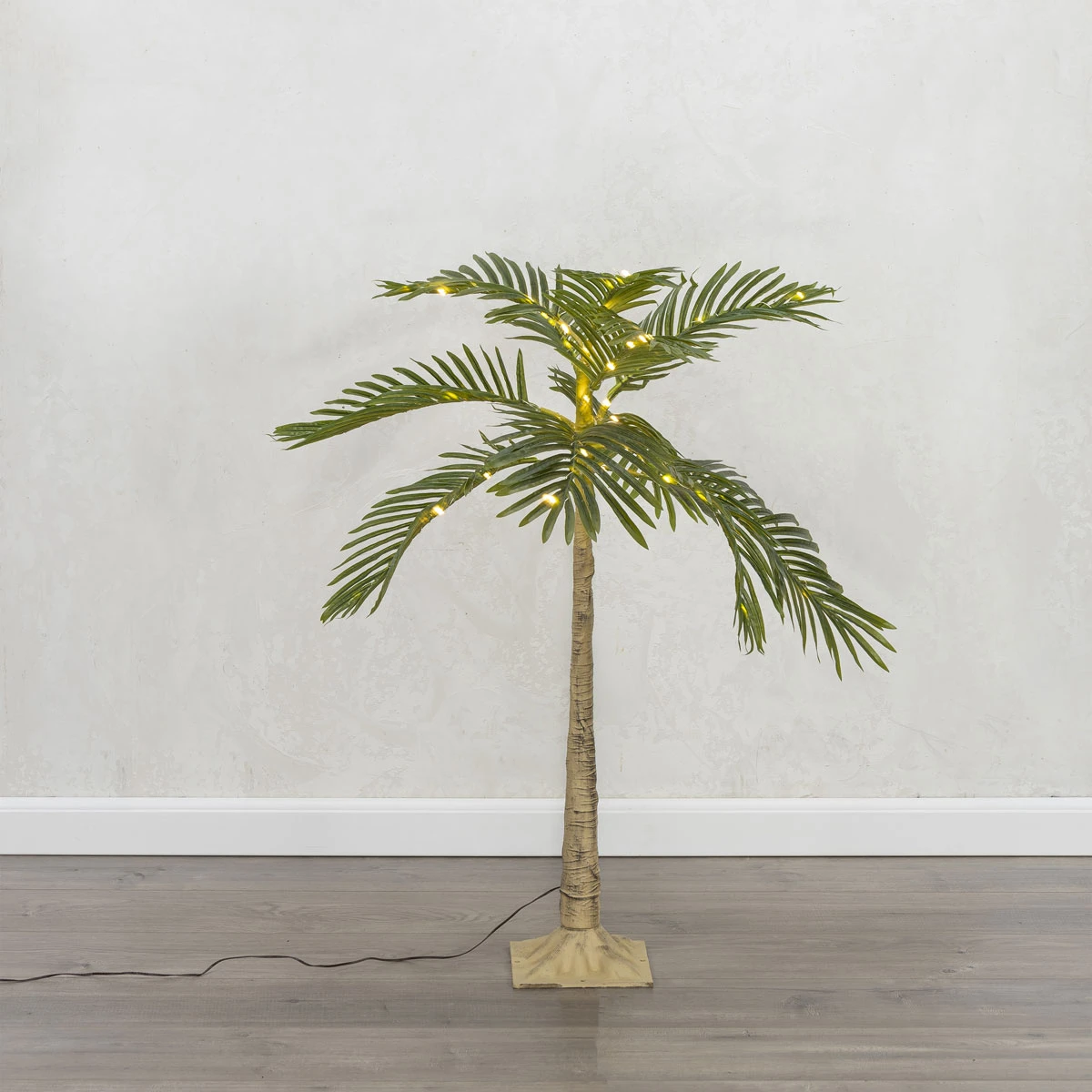 Pre lit 4 foot palm tree with 55 warm white micro lights. Weather resistant lighted palm will give any outdoor deck, yard, patio or pool area a fun and inviting place for all your outdoor events.