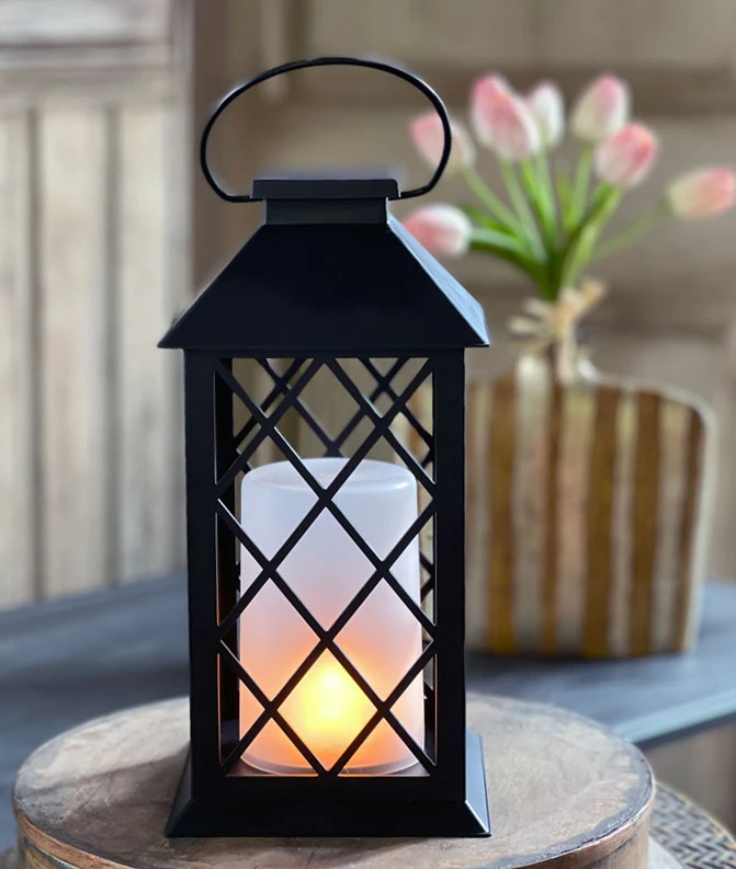 Fire flame plastic lantern without glass or frosted panes, no worries for breakage, features a 5 hour timer for your convenience.