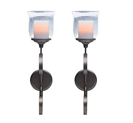 Each sconce hangs as easy as a picture and installs in minutes. Includes an attached glass shade, hardware for hanging and a 4 inch removable flameless pillar with a convenient 5 hour timer.