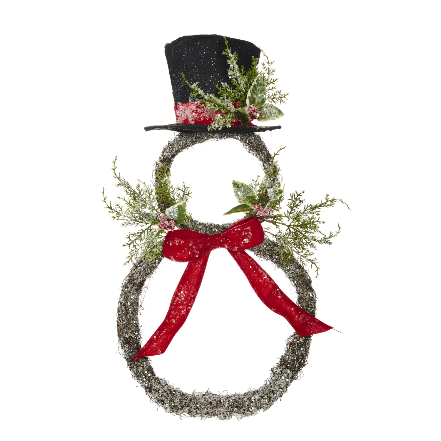 What a great way to welcome your guest! 24 inch iced snowman wreath with ice crystals throughout.