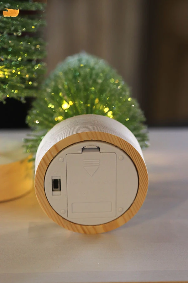 • Green bottle brush tree with LED Lights On Wood base