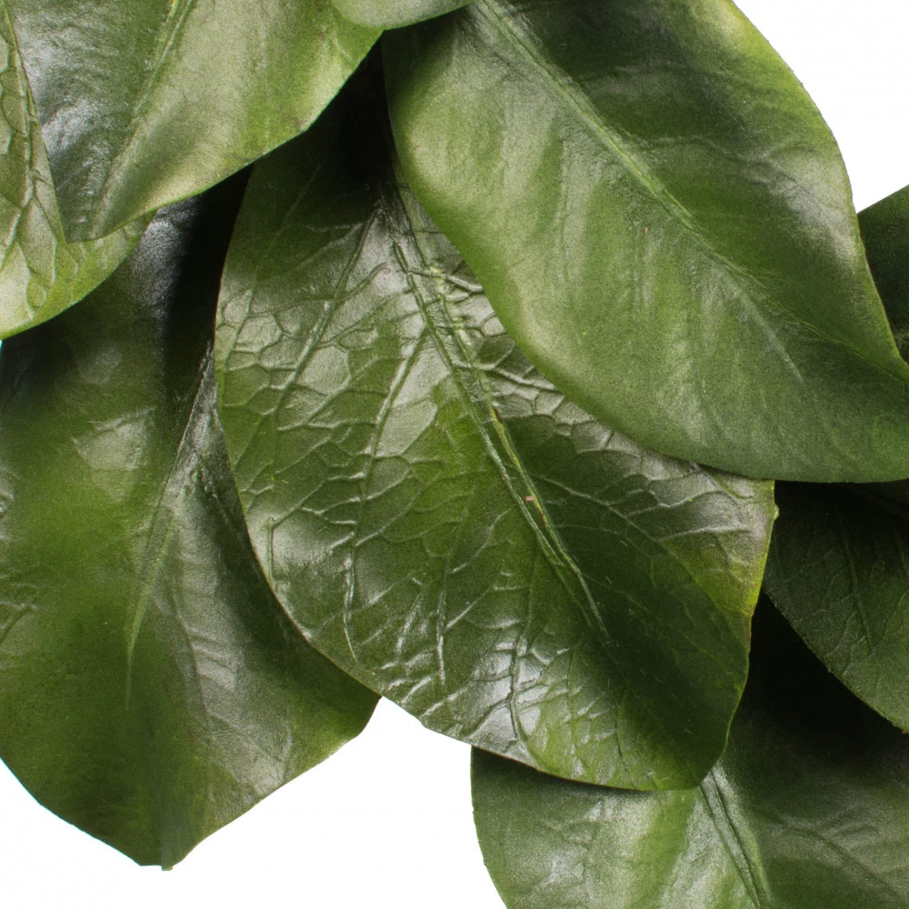 Realistic leaves are heavy like the real leaves. Perfectly lovely as is, but you can add any seasonal accent you wish. Interior ring is 6″, perfect size for hurricane glass or pillar candles. Our customers asked for a no-blossom small magnolia wreath and we found one worthy of the quality of our other magnolia products. Enjoy!