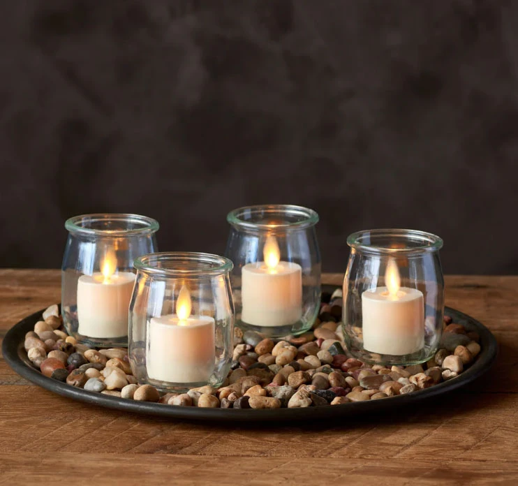 Add a delicate centerpiece to your event with a Set of 4 Ivory Flameless Candle Tealights featuring real Flame-Effect technology. The patented moving flame casts a flickering glow against the high-quality plastic. Place your candles in votives or glass jars to capture the look of traditional candles without the open flame.