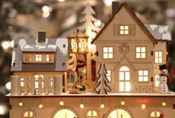 Wind Up Animated Lighted Musical Holiday Wood House Battery Operated
